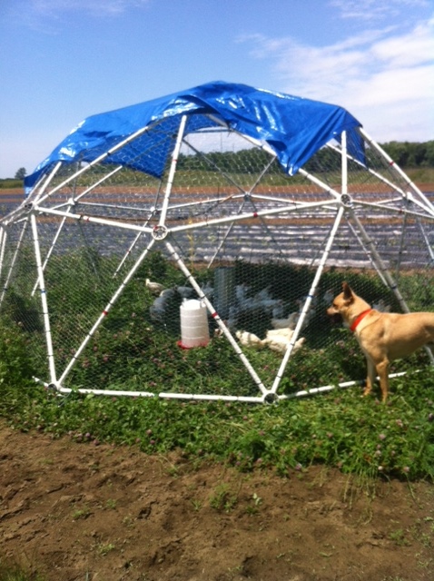Chickens and Turkeys are safe inside the Geodesic Chicken Coop